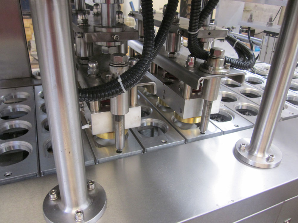 本機(jī)器適用于塑料杯、塑料盒等容器的自動(dòng)灌裝封口。用于飲料,酸奶,果凍,布丁,豆奶,純凈水等包裝。